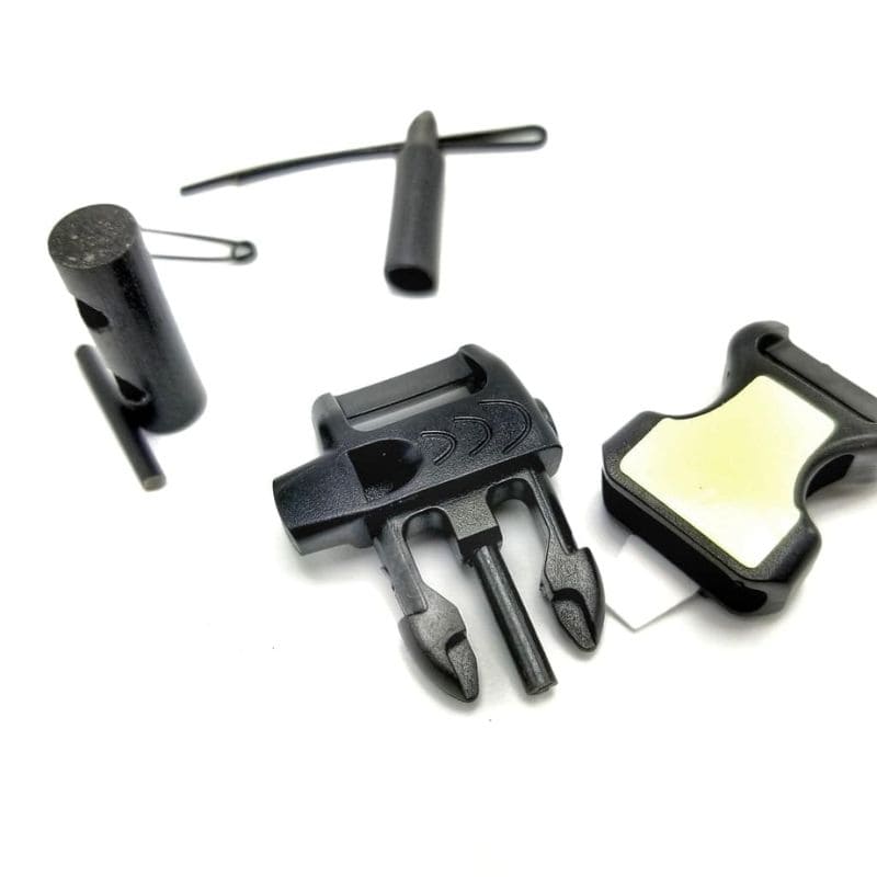 - Ceramic Striker Blade and Cutting Tool: Removable, secured inside buckle Zerconia, abrasion/corrosion resistant, non-dulling, razor sharp, non-metallic, concealed blade. (Strike against fire steel to create fire sparks, cut open packages, use as surgical blade, fillet fish, etc.)