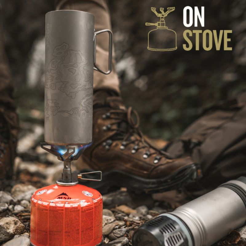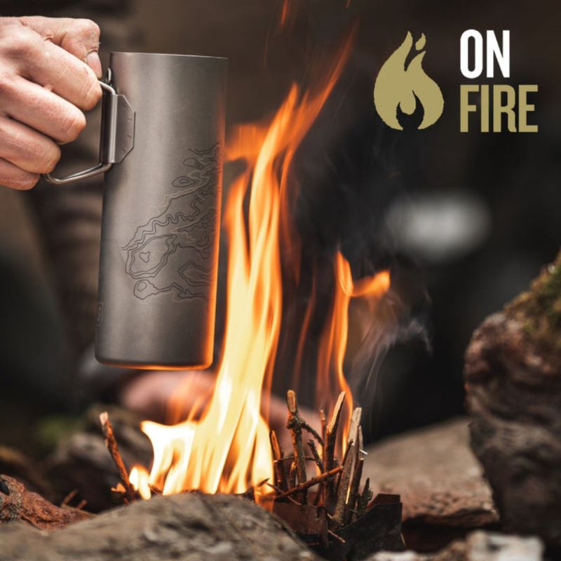 • Heat it up! Utilizing the butterfly handles, the Outer Ti Cup can be used to heat water and cook food alongside hot coals or near a direct flame. Can also be used with the Grayl titanium camp stove.