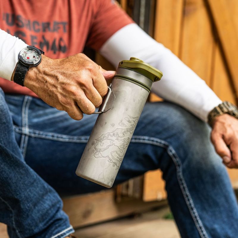 • Laser-engraved with multi-color signature Grayl topo art.