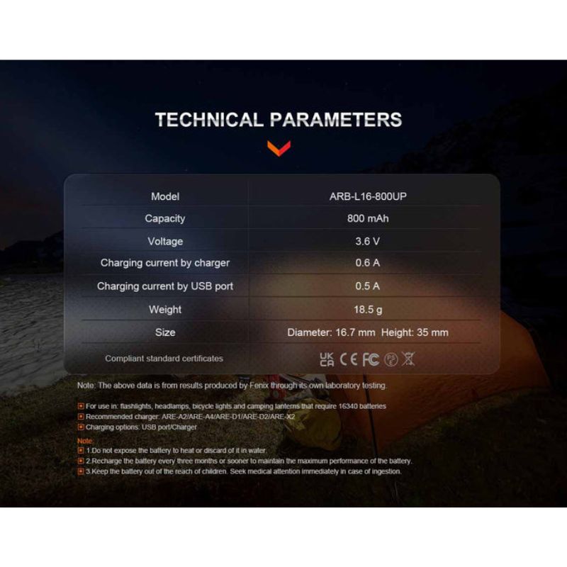 Fenix ARB-L16-800UP 16340 Rechargeable Battery