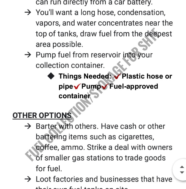 - Locate improvised fuel sources for SHTF procurement.