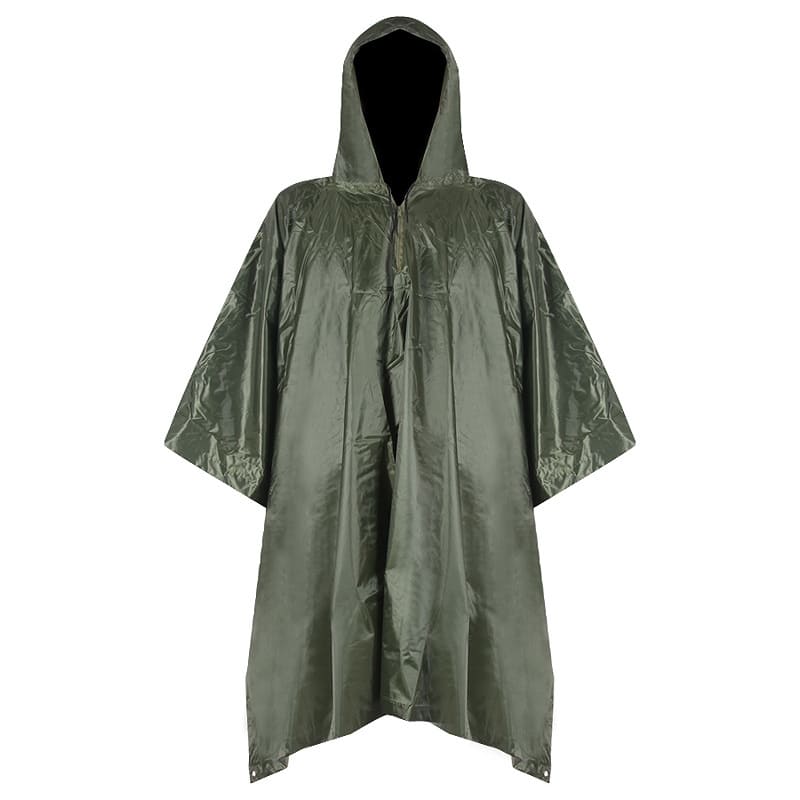 This poncho is heavy duty and gets the job done with plenty of coverage for your pack. Material made of PVC, tear resistant, and durable to use. There are brass eyelets and press studs on each side so that you have the versatility to open your poncho up to form it into a shelter - A-Frame, Plow Point...your choice.